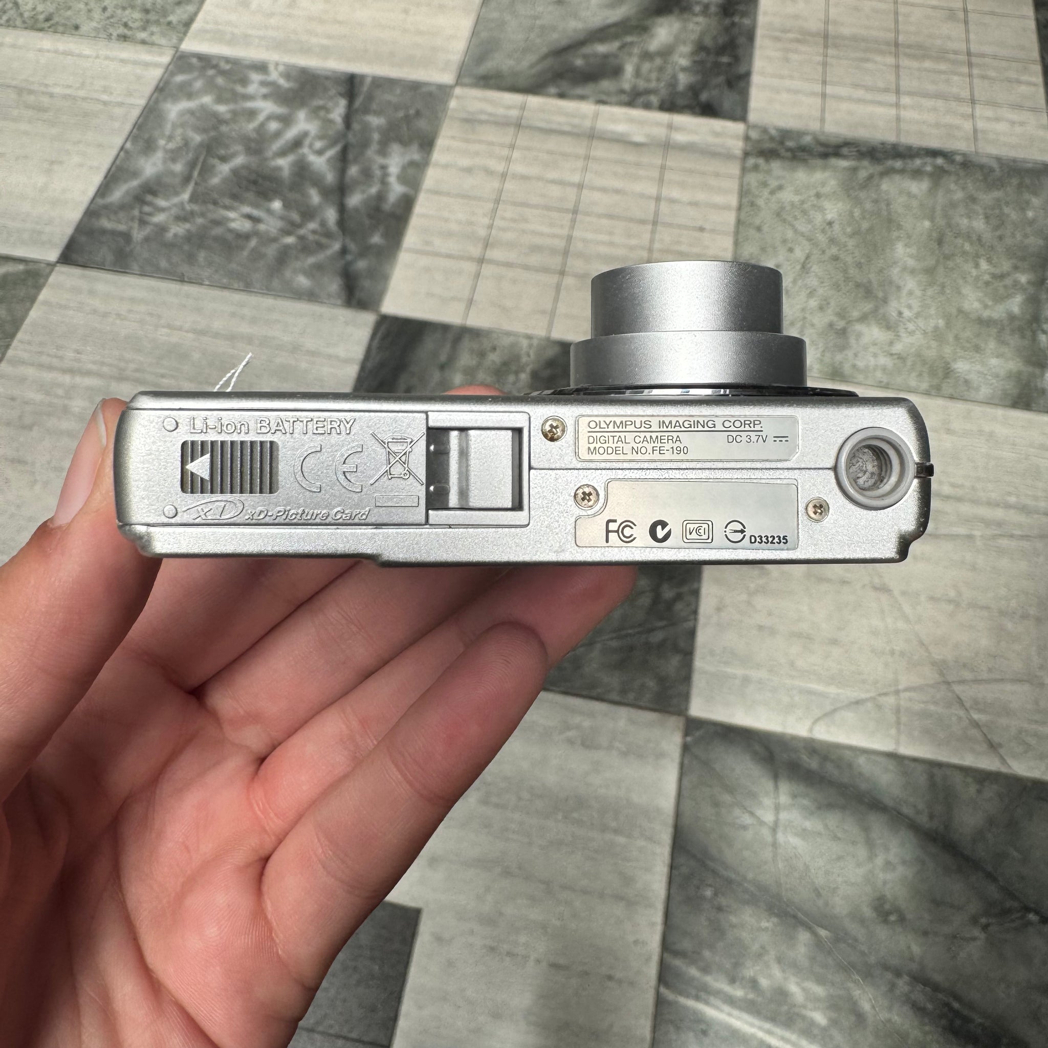 The Olympus FE-190 (released 2006) is an ultra-compact 6.0-megapixel digital camera featuring a 3x optical zoom lens (38-111mm equivalent) and a 2.5-inch LCD screen. It is known for its slim, 0.7-inch (18.5mm) metal body, making it highly portable. It relies on xD-Picture Card storage, features a 22MB internal memory, and uses LI-42B lithium-ion batteries.