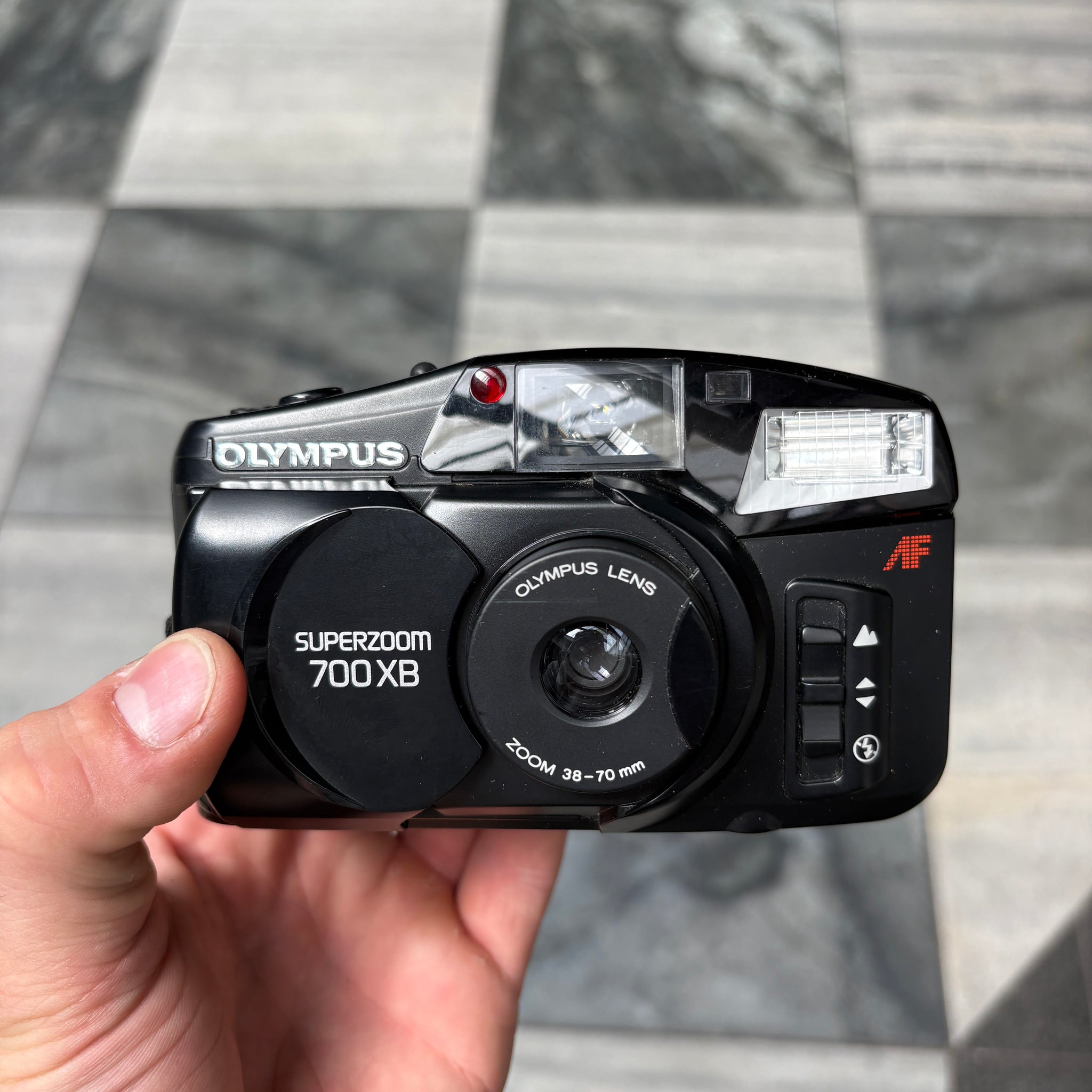 The Superzoom 700XB is a 35mm compact camera released by Olympus. It is equipped with a built-in flash and zoom, and a 38-70mm zoom lens.