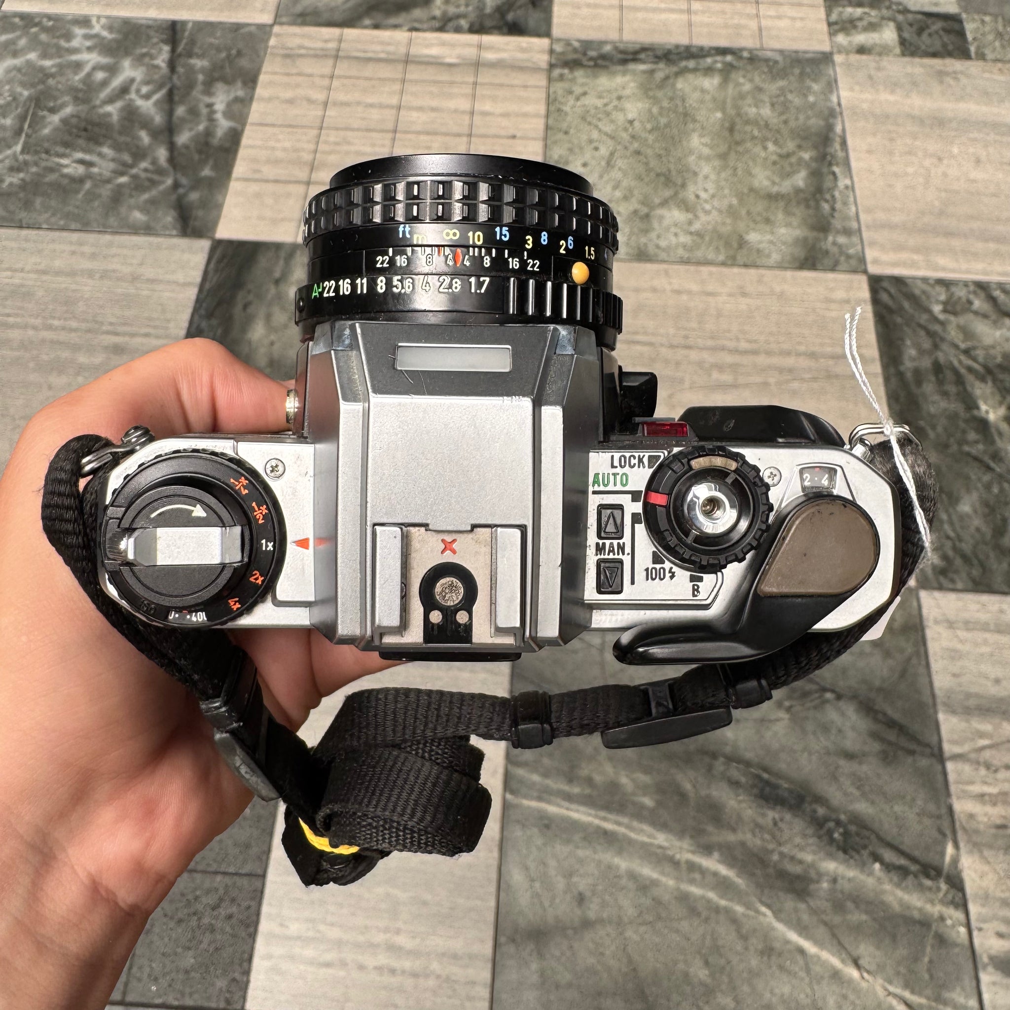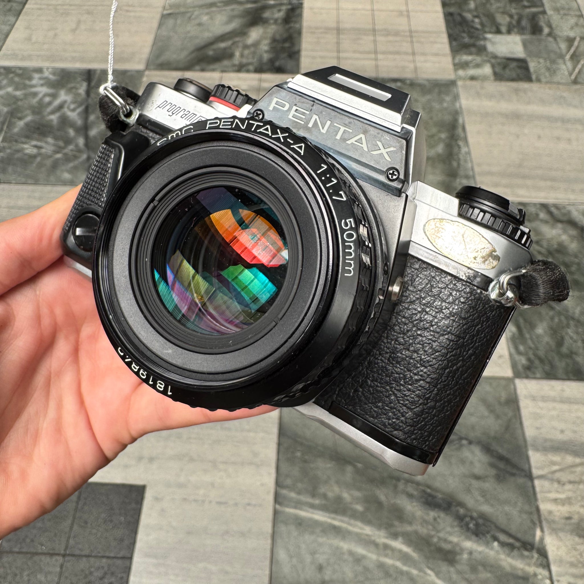 Pentax Program A with SMC Pentax-A 50mm f/1.7 lens. This camera also comes with a strap!